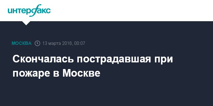 Скончалась пострадавшая при пожаре в Москве