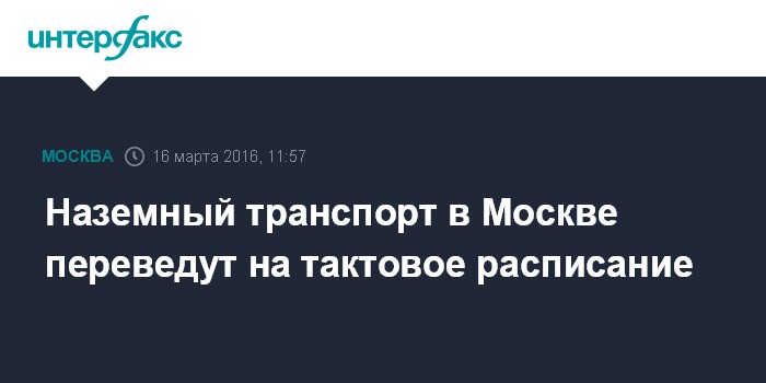 Москва. 16 марта. INTERFAX.RU - Городской наземный транспорт на основных маршрутах перейдет на тактовое расписание, как в метро, с определённым интервалом, сообщает официальный портал мэра и правительства Москвы.