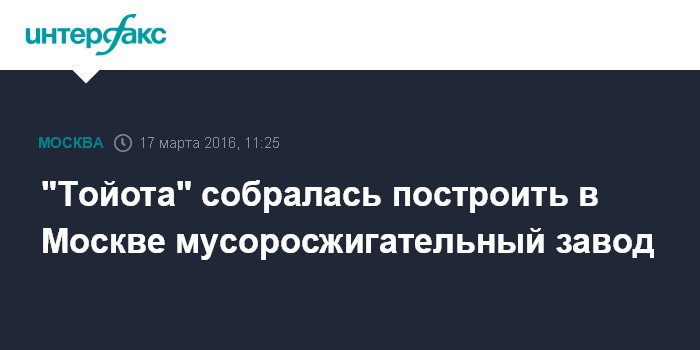 "Тойота" собралась построить в Москве мусоросжигательный завод