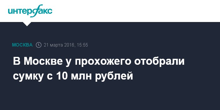 В Москве у прохожего отобрали сумку с 10 млн рублей