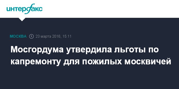Москва. 23 марта. INTERFAX.RU - Закон, по которому ещё 120 тыс. пожилых москвичей получат льготы по оплате взносов за капремонт, принят в среду на заседании Мосгордумы единогласно всеми фракциями и объединениями.