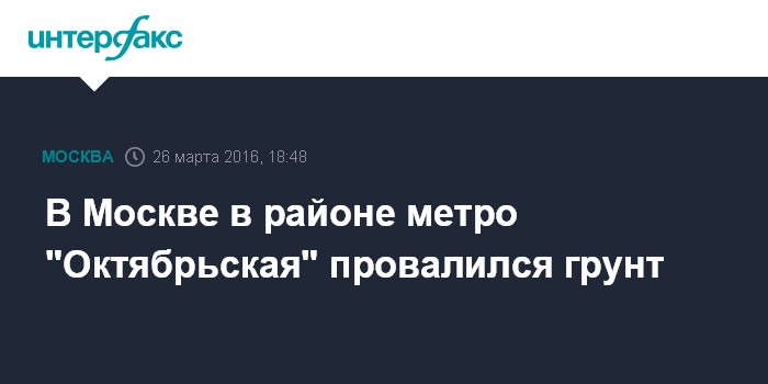 Москва. 26 марта. INTERFAX.RU - В районе Крымского моста со стороны станции метро "Октябрьская" в результате прорыва воды образовался провал грунта, сообщил "Интерфаксу" в субботу источник в экстренных службах города.
