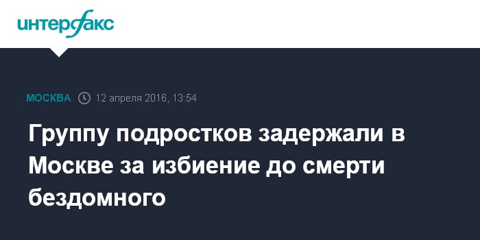 Москва. 12 апреля. INTERFAX.RU - Шестеро подростков задержаны по подозрению в избиении бомжа, который после этого нападения умер, сообщили "Интерфаксу" во вторник в пресс-службе московского главка СКР.