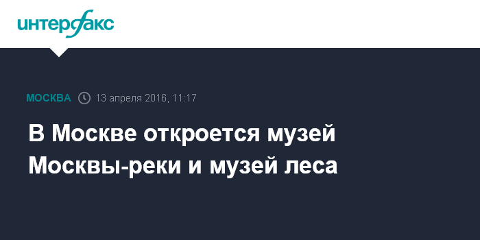 Москва. 13 апреля. INTERFAX.RU - В Москве в 2017 году откроется музей Москвы-реки и музей леса, сообщает портал мэра и правительства Москвы.