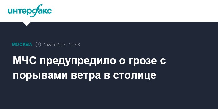 "Главное управление МЧС России по Москве предупреждает: 4 мая до 20:00 часов в столице местами ожидается гроза и порывы северо-западного ветра до 11-16 м/с. Возможны повреждения разрядами атмосферного электричества объектов, не оборудованных громоотводом", - сказал сотрудник пресс-службы.