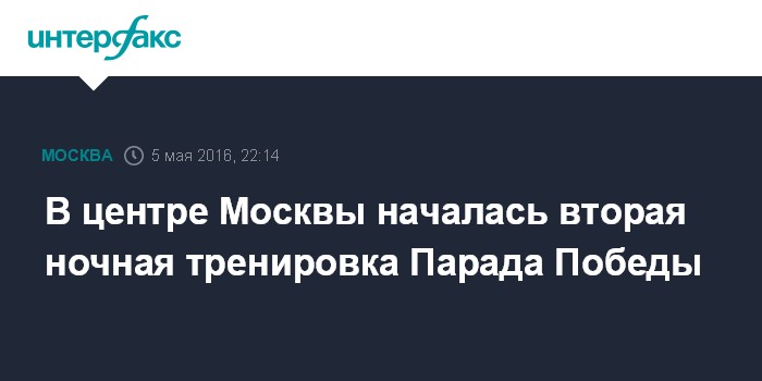 Москва. 5 мая. INTERFAX.RU - Очередная репетиция военного парада, который пройдет 9 мая на Красной площади, началась в Москве в четверг в 22:00.