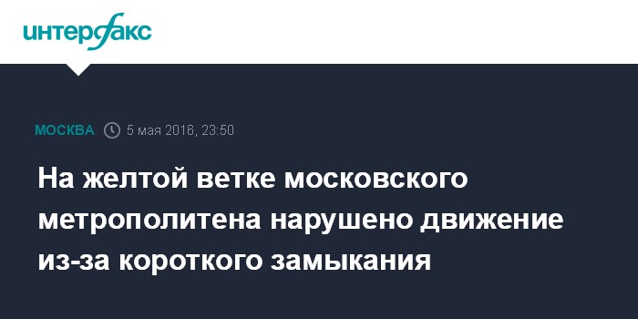 На желтой ветке московского метрополитена нарушено движение из-за короткого замыкания