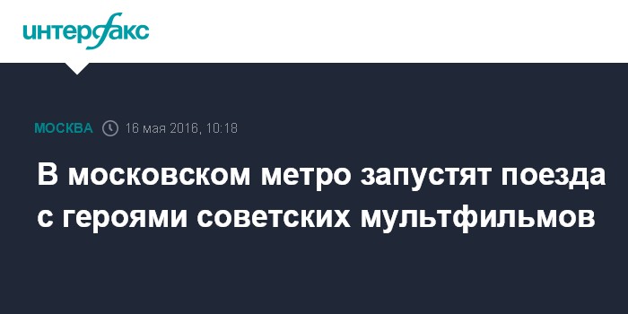 Москва. 16 мая. INTERFAX.RU - В столичном метро в июне запустят три поезда, посвященных 80-летию "Союзмультфильма", сообщает портал мэра и правительства Москвы.