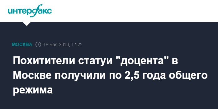 Похитители статуи "доцента" в Москве получили по 2,5 года общего режима