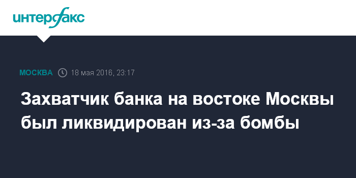 Захватчик банка на востоке Москвы был ликвидирован из-за бомбы
