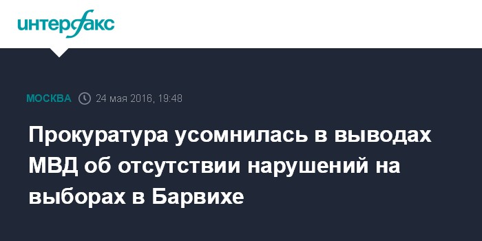 Москва. 24 мая. INTERFAX.RU - Прокуратура Московской области признала необоснованным решение МВД об отсутствии нарушений закона при массовой регистрации и подвозе избирателей на выборах в Барвихе.