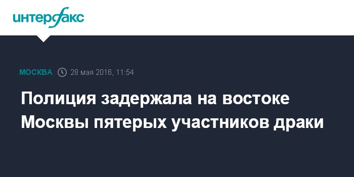 Москва. 28 мая. INTERFAX.RU - На востоке Москвы задержаны пятеро дебоширов, оказавших полицейским сопротивление, сообщили "Интерфаксу" в субботу в пресс-службе столичного главка полиции.