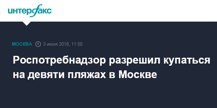 Москва. 3 июня. INTERFAX.RU - Специалистами Роспотребнадзора приняты в эксплуатацию 10 из 11 зон отдыха в столице, где предусмотрено купание.