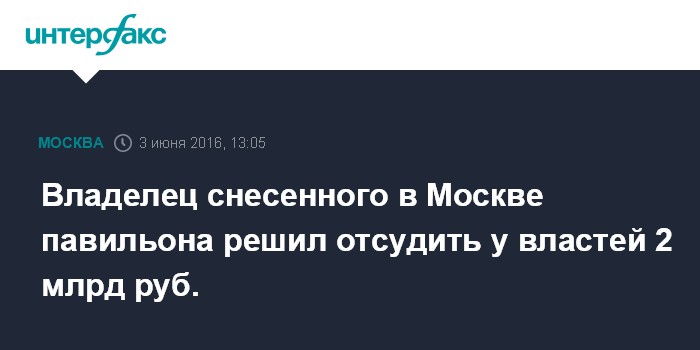 Владелец снесенного в Москве павильона решил отсудить у властей 2 млрд руб.