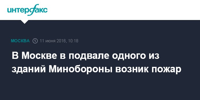 Москва. 11 июня. INTERFAX.RU - В подвале одного из зданий Минобороны России в центре Москвы начался пожар, сообщил "Интерфаксу" в субботу источник в экстренных службах города.
