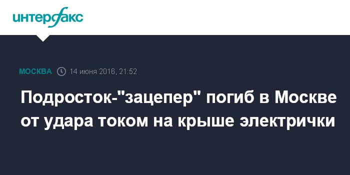 Москва. 14 июня. INTERFAX.RU - Столичные следователи проверяют обстоятельства гибели от удара током подростка, катавшегося на крыше электрички, сообщается во вторник на сайте Московского межрегионального СУ на транспорте СК РФ.