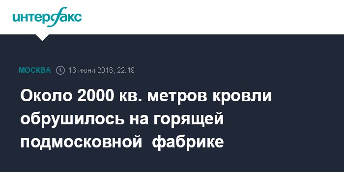 Москва. 16 июня. INTERFAX.RU - На горящей мебельной фабрике в подмосковном Фрязино частично обрушилась кровля, сообщили "Интерфаксу" в Центральном региональном центре МЧС в четверг вечером.
