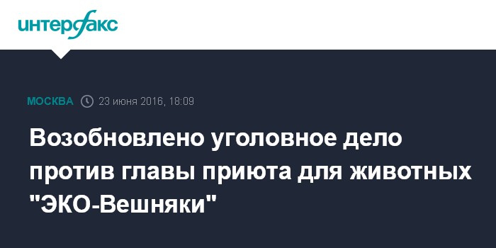 Москва. 23 июня. INTERFAX.RU - Уголовное дело о мошенничестве в отношении руководителя приюта для животных "ЭКО-Вешняки" Веры Петросьян возобновлено по инициативе прокуратуры Москвы, заявили в Генпрокуратуре.