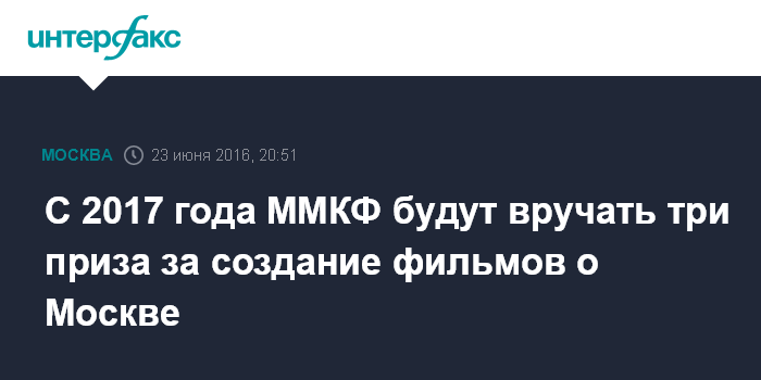 С 2017 года ММКФ будут вручать три приза за создание фильмов о Москве