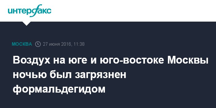 Москва. 27 июня. INTERFAX.RU - Росгидромет зафиксировал повышенное содержание формальдегида в воздухе в некоторых районах юга и юго-востока Москвы в ночь на понедельник.