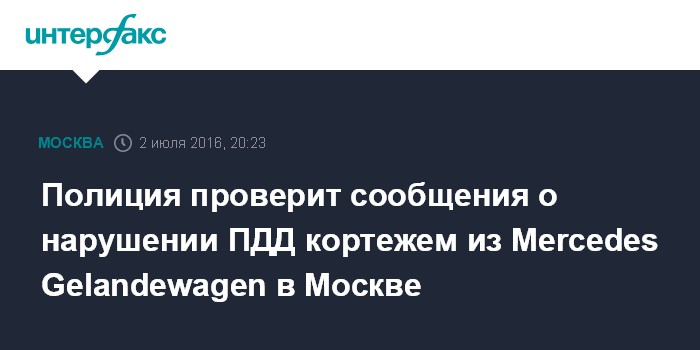 Москва. 2 июля. INTERFAX.RU - Полиция проверяет информацию о нарушении правил дорожного движения кортежем из нескольких десятков элитных машин Mercedes Gelandewagen в Москве, сообщили "Интерфаксу" в субботу в пресс-службе столичной Госавтоинспекции.