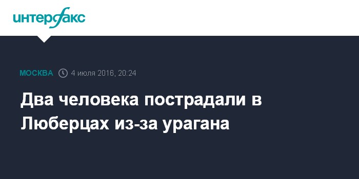Москва. 4 июля. INTERFAX.RU - В результате урагана в Люберцах пострадали два человека, сообщила пресс-служба администрации Люберецкого района.