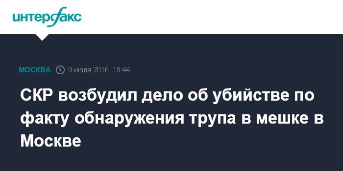 СКР возбудил дело об убийстве по факту обнаружения трупа в мешке в Москве