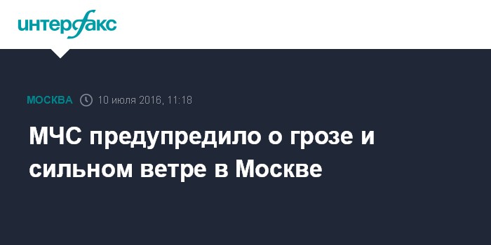"Главное управление МЧС России по городу Москве предупреждает: с 11:30 10.07.16 до 06:00 11.07.16 в Москве (включая ТиНАО) местами ожидается гроза, дождь, местами сильный, шквалистое усиление ветра 12-17м/с", - сказали в пресс-службе ведомства.