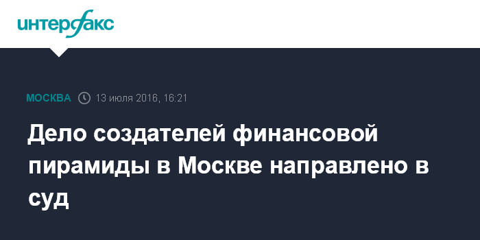 Дело создателей финансовой пирамиды в Москве направлено в суд