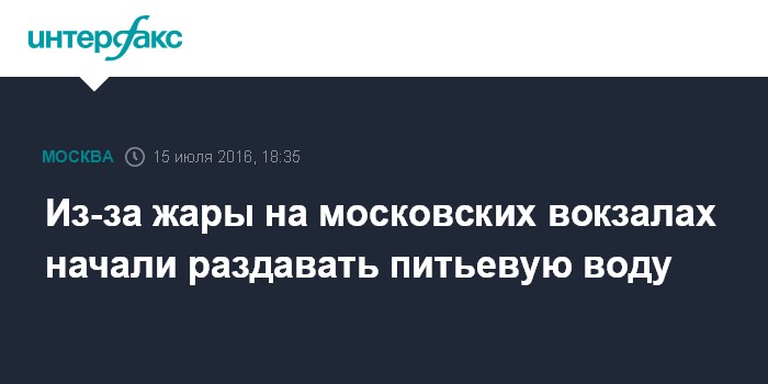 Москва. 15 июля. INTERFAX.RU - Раздача бесплатной питьевой воды организована на вокзалах столицы и Подмосковья в связи с объявленным в регионе "оранжевым" уровнем опасности из-за жаркой погоды, сообщает пресс-служба ОАО "Центральная пригородная пассажирская компания".