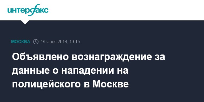 Москва. 16 июля. INTERFAX.RU - Полиция разыскивает напавшего на сотрудника МВД РФ в Москве мужчину, награда за информацию составляет 1 млн рублей, сообщили "Интерфаксу" в столичном главке МВД РФ.