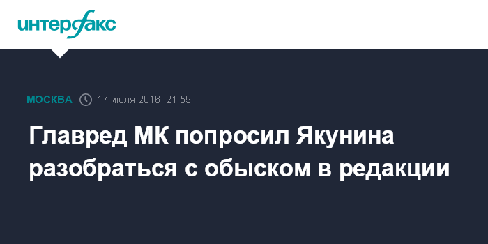 Главред МК попросил Якунина разобраться с обыском в редакции