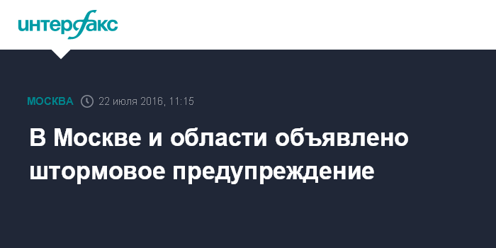 Москва. 22 июля. INTERFAX.RU - Гидрометцентр России выпустил штормовое предупреждение для Москвы, Подмосковья и ряда областей ЦФО в связи с внезапно сформировавшимся грозовым фронтом, который придет в регион во второй половине пятницы.