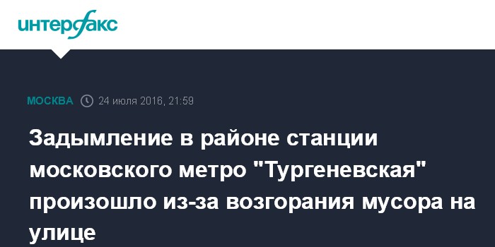 Москва. 24 июля. INTERFAX.RU - Вблизи станции "Тургеневская" Калужско-Рижской линии московского метрополитена наблюдается незначительное задымление, вероятно, из городских коммуникаций.