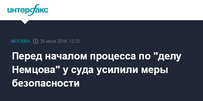 Москва. 25 июля. INTERFAX.RU - Меры безопасности усилены возле здания Московского окружного военного суда, где начинается предварительное слушание по делу об убийстве оппозиционного политика Бориса Немцова.