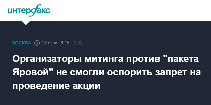 Организаторы митинга против "пакета Яровой" не смогли оспорить запрет на проведение акции