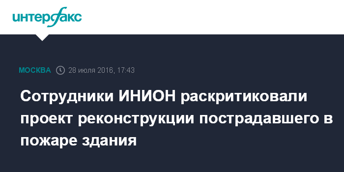 Москва. 28 июля. INTERFAX.RU - Коллектив Института научной информации по общественным наукам (ИНИОН) РАН обеспокоен проектом реконструкции пострадавшего в пожаре здания, поскольку библиотека института в проектируемое фондохранилище не поместится.