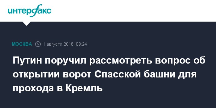 Путин поручил рассмотреть вопрос об открытии ворот Спасской башни для прохода в Кремль