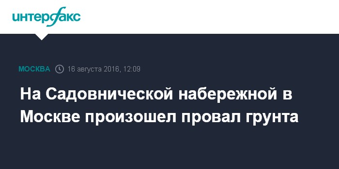 Москва. 16 августа. INTERFAX.RU - Движение на Садовнической набережной в центре Москвы перекрыто из-за провала грунта, сообщили "Интерфаксу" во вторник в пресс-службе Центра организации дорожного движения правительства столицы.