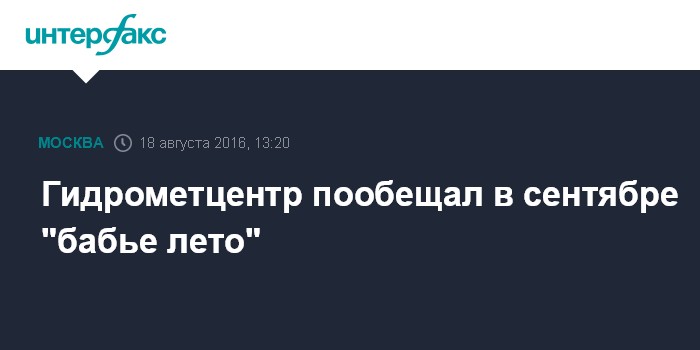 "Общий прогноз на сентябрь - в среднем ожидаемая температура около и выше нормы, осадков выпадет около и меньше нормы. И сейчас мы ожидаем выраженные периоды "бабьего лета", - сказал Вильфанд "Интерфаксу" в четверг.