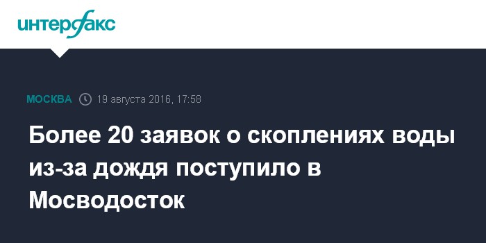 Москва. 19 августа. INTERFAX.RU - В ГУП "Мосводосток" поступило 23 заявки о скоплениях воды из-за дождя, сообщили "Интерфаксу" в пресс-службе ГУП "Мосводосток" в пятницу.