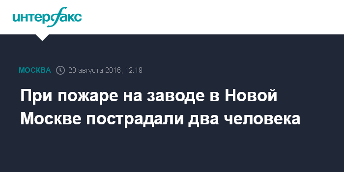 Москва. 23 августа. INTERFAX.RU - Два человека пострадали при пожаре в здании лакокрасочного завода в Новой Москве, сообщил "Интерфаксу" источник в медицинских службах города.