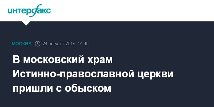 "Сотрудники силовых структур проводят обыск", - сообщили "Интерфаксу" в приходе, который относится к Истинно-православной церкви, не являющейся частью РПЦ.