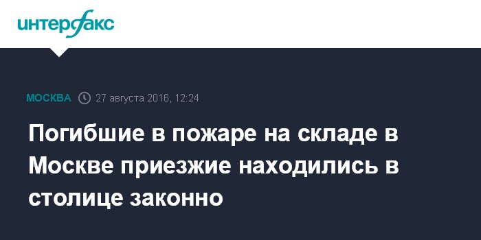 Москва. 27 августа. INTERFAX.RU - Погибшие во время пожара на Алтуфьевском шоссе находились на территории Москвы на законных основаниях, сообщили "Интерфаксу" в пресс-службе столичного главка МВД.