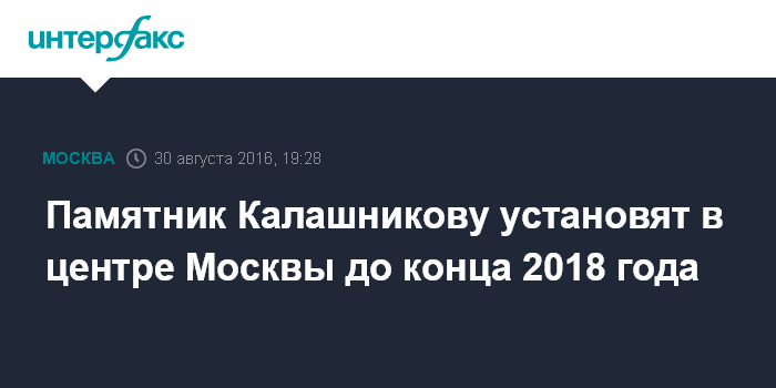 Москва. 30 августа. INTERFAX.RU - Памятник знаменитому конструктору, создателю автомата АК, Герою России и дважды Герою Социалистического труда Михаилу Калашникову установят в центре Москвы не позднее 31 декабря 2018 года, сообщили "Интерфаксу" в горадминистрации во вторник. Соответствующее распоряжение подписал мэр Москвы Сергей Собянин.
