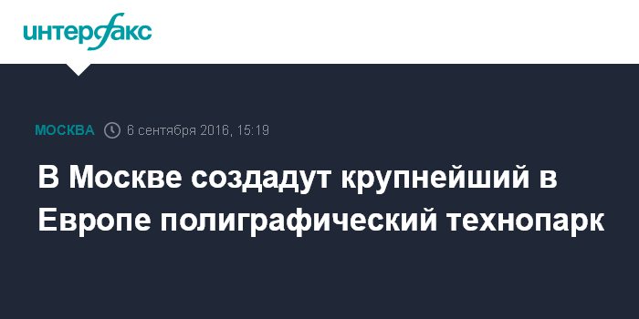 Москва. 6 сентября. INTERFAX.RU - Крупнейший в Европе моноотраслевой полиграфический технопарк площадью 57 тыс. кв. метров будет создан в Москве. Об этом сообщили "Интерфаксу" в пресс-службе департамента науки, промышленной политики и предпринимательства столицы.