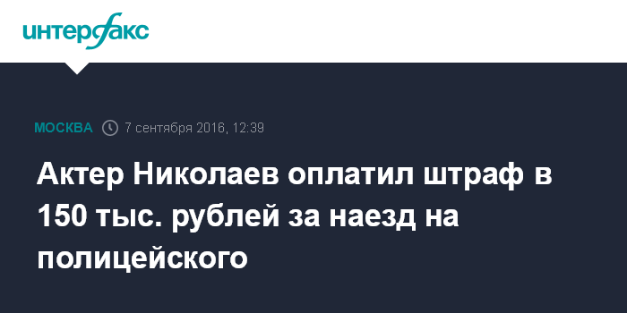 Актер Николаев оплатил штраф в 150 тыс. рублей за наезд на полицейского