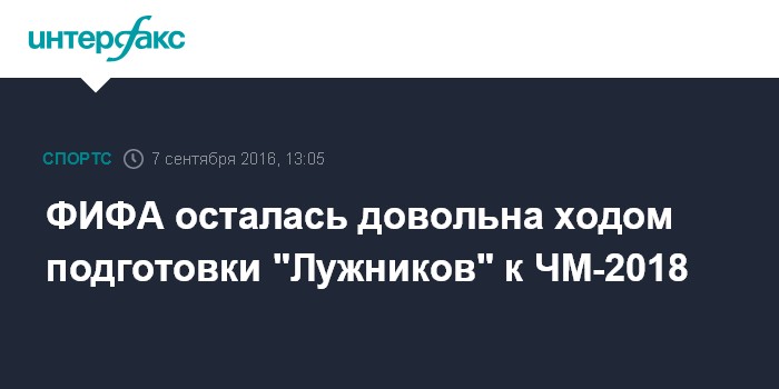 Москва. 7 сентября. INTERFAX.RU - Представители комиссии ФИФА выразили удовлетворение ходом подготовки "Лужников" к чемпионату мира по футболу 2018 года.