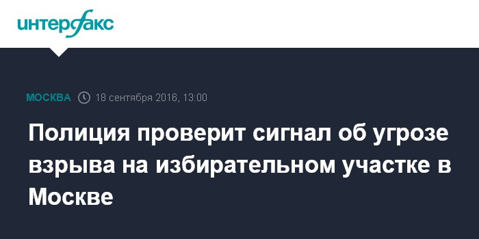 Москва. 18 сентября. INTERFAX.RU - Полиция проверяет информацию об угрозе взрыва на одном из избирательных участков в центре Москвы, сообщил "Интерфаксу" в воскресенье источник в правоохранительных органах.