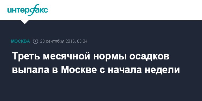 "При сентябрьской норме для Москвы на этой неделе выпали уже 21 мм осадков, что составляет 33% от месячной нормы", - сказал собеседник агентства.